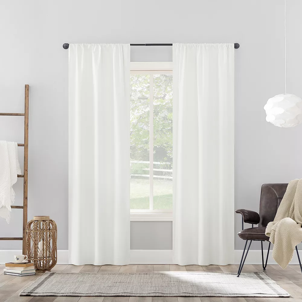 - Includes 2 room darkening grommet curtain panels and 2 sheer rod pocket curtain panels.
