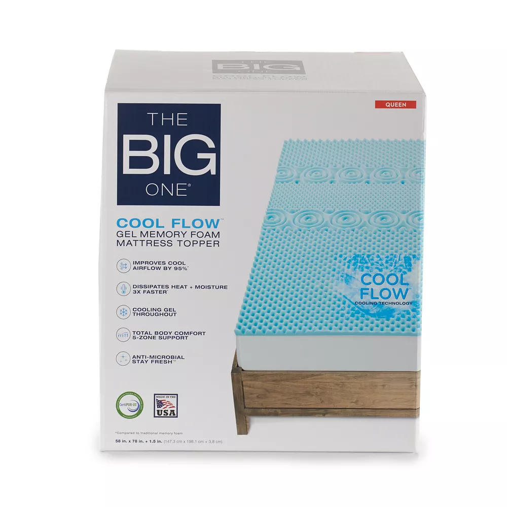 Add an extra layer of comfort to your bed with The Big One cool flow gel memory foam mattress topper. This mattress topper features cool flow technology for improved air flow and moisture management. Sleep to the fullest when you rest on this The Big One mattress topper.