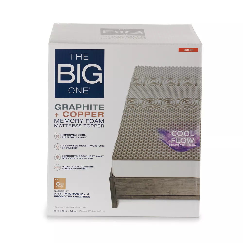 For an extra layer of comfort, add The Big One graphite and copper memory foam mattress topper to your bed.