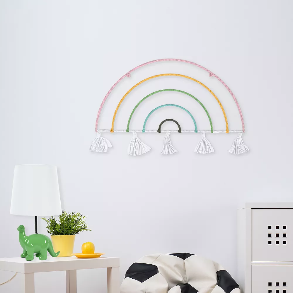 Brighten your kiddo’s room with this Kids The Big One Rainbow Tassel Wall Decor.