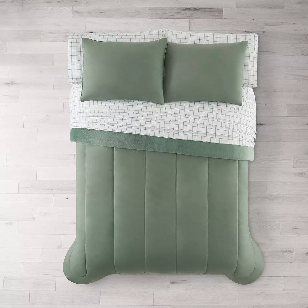 Complete the look of any room with this cozy The Big One® Plush Reversible Complete Bedding Set.